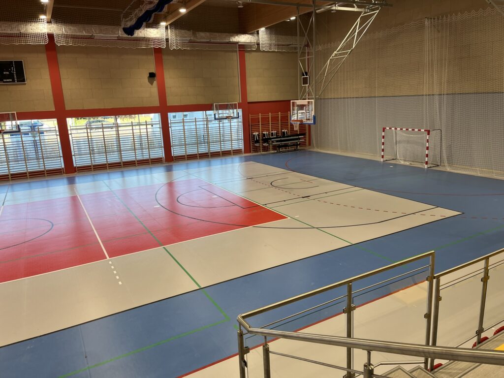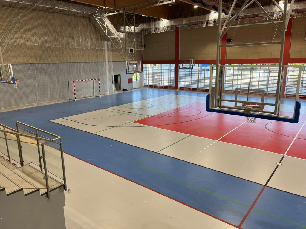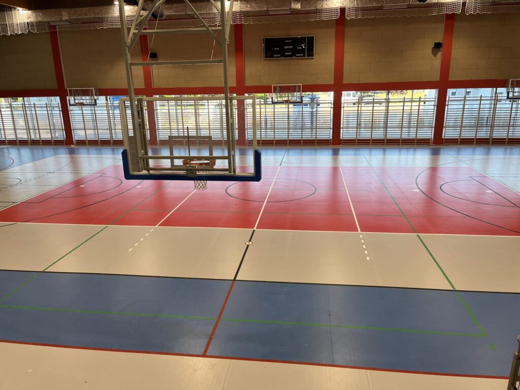 Wykonanie podłogi sportowej Rebel Sport O z wierzchnią warstwą z wykładziny sportowej Tarkett Omnisport Active + o grubości 8.1mm.